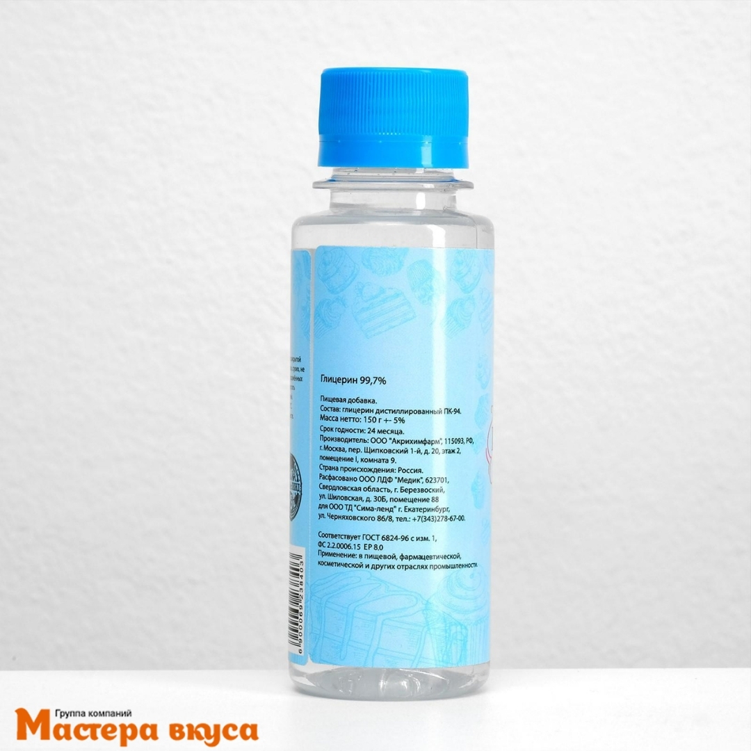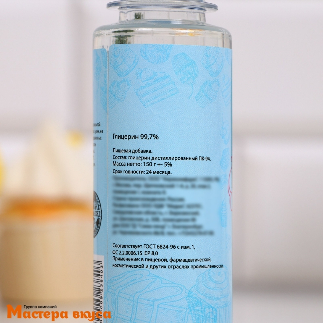 В кулинарии глицерин является очень важной составляющей в создании десертов: он помогает продлить срок годности и свежесть продукта, позволяет избежать зачерствения выпечки и улучшает ее вкусовые свойства.